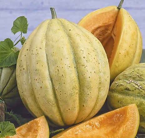 Type charentais. Fruit allongé de 1 à 2 kg. Chair orange, parfumée et très sucrée. Variété ancienne, facile à conduire et très productive. Ne nécessite pas de taille. Bonne nouaison en conditions froides.