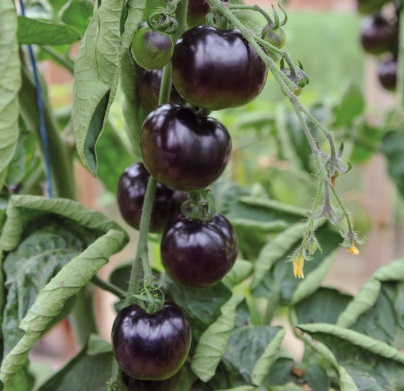 Fruits de 5 à 7 cm à peau bleue/violet foncé devenant rouge à pleine maturité. Chair rouge foncé à saveur légèrement aromatique et fruitée, grappes de 5 à 8 fruits.