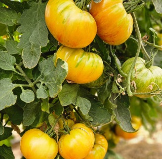 Fruit original jaune strié orange, gros et charnu pouvant atteindre 350 g. Bonne productivité.